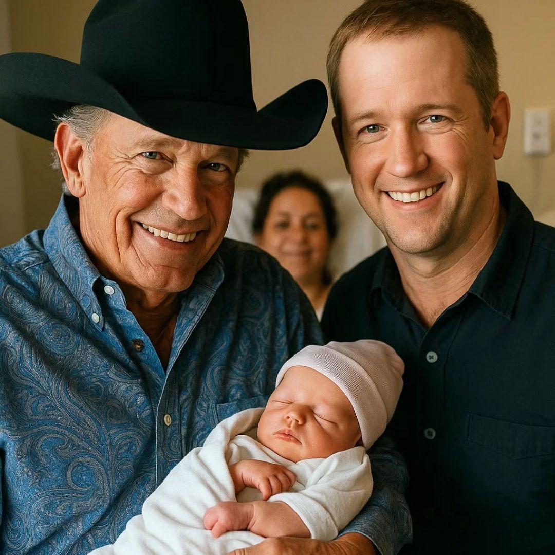 For George, this birth symbolized more than just a new addition — it represented the continuation of a family legacy. The 72-year-old icon, who has spent over forty years at the top of country music, entered the hospital room quietly, carrying a bouquet of flowers and his trademark cowboy hat. Witnesses recall him whispering a short prayer of thanks before gently kissing his new grandchild’s forehead.